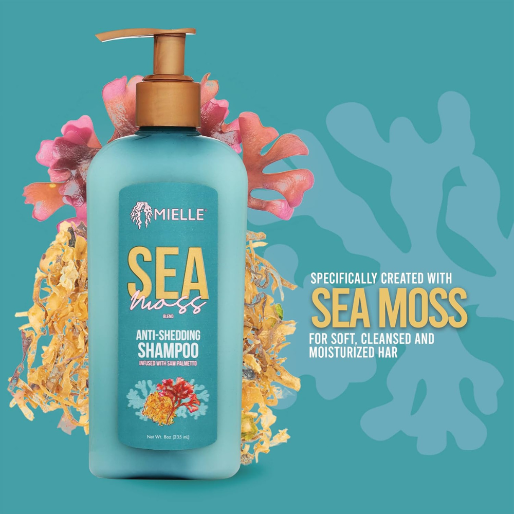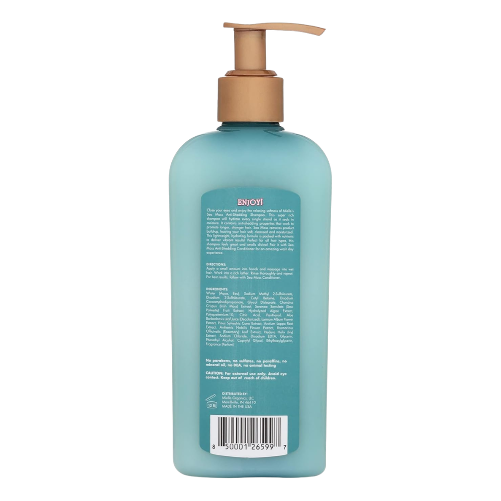 Le shampoing anti-chute Sea Moss de Mielle Organics est un soin lavant fortifiant spécialement formulé pour nettoyer en douceur tout en aidant à réduire la casse des cheveux. Enrichi en mousse de mer, un ingrédient naturellement riche en minéraux, il nourrit le cuir chevelu, renforce la fibre capillaire et améliore la résistance des cheveux fragiles. Sa formule équilibrée élimine les impuretés sans dessécher, laissant les cheveux propres, souples et visiblement plus sains.